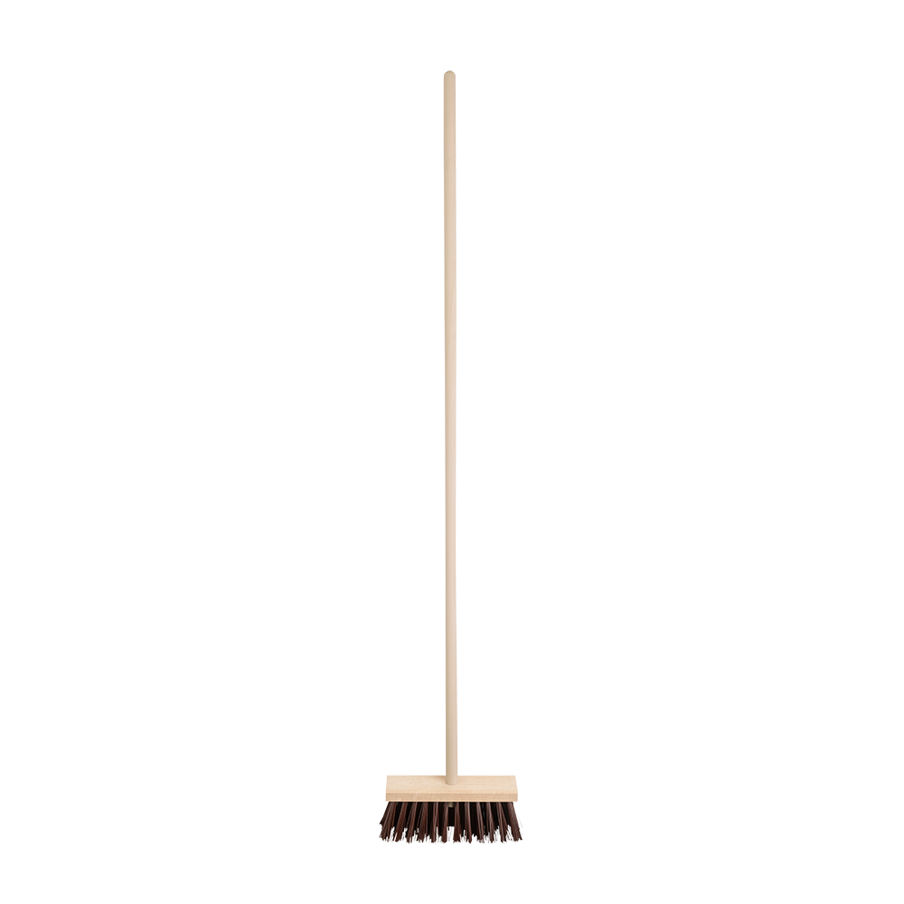 Hyvä puurunkoinen katuharja koti- ja taloyhtiökäyttöön. Kiinnitys varteen on varmistettu metalliniitillä.