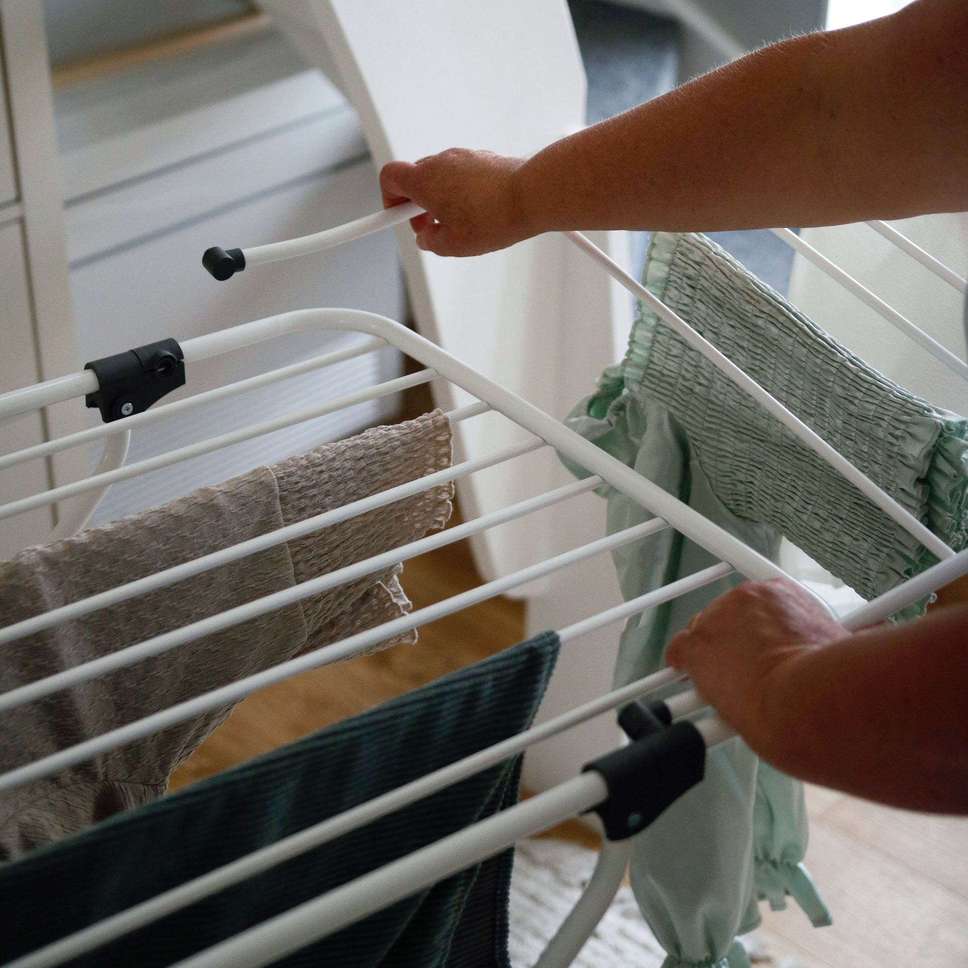 SINI Forma on pyykkitelinevalikoimamme lippulaivamalli. Kun etsit tukevinta, monikäyttöisintä ja parasta kuivaustelinettä, on Forma oikea valinta. Tuotteella on viiden vuoden SINI-takuu. Vinkki: voit kääntää siivekkeet pystyyn, kolmioksi, nojaamaan toisiaan vasten. Näin siivekkeisiin voi ripustaa pikkupyykkiä ja kuivausteline vie vähemmän tilaa kuin täyteen leveyteen levitettynä.