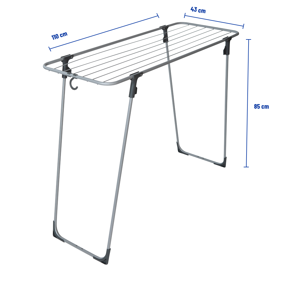 Kompakti ja näppärä kuivausteline, joka vie vähän tilaa. Ainutlaatuinen rakenne, joka lukitsee jalat telineen ollessa kasaan taitettuna. Mukana koukku ripustamista varten telineen säilytyksen ajaksi. Jalkojen leveä rakenne tekee telineestä erityisen tukevan. 9 m kuivaustilaa. Tuotteella on viiden vuoden SINI-takuu.