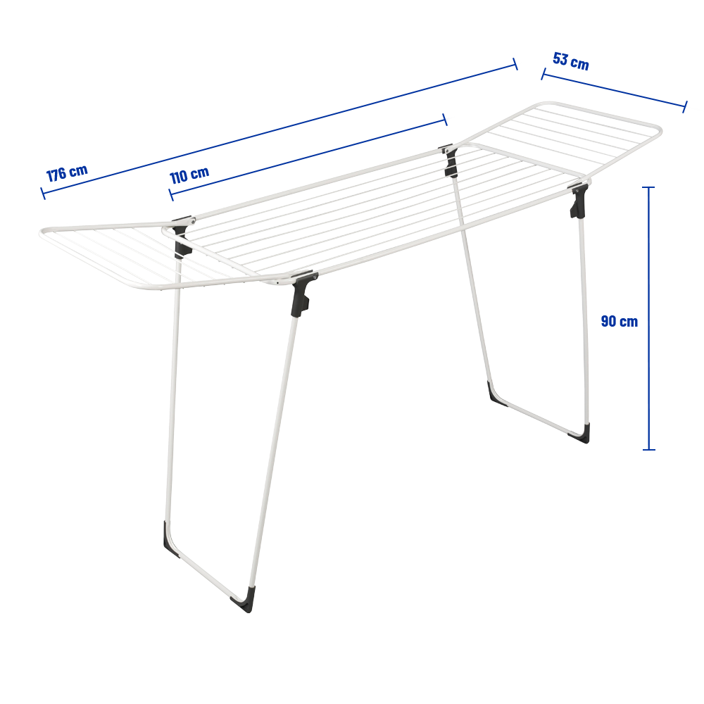 Hyvä tukeva teline, mahtuu yllättävän paljon pyykkiä kuivumaan.