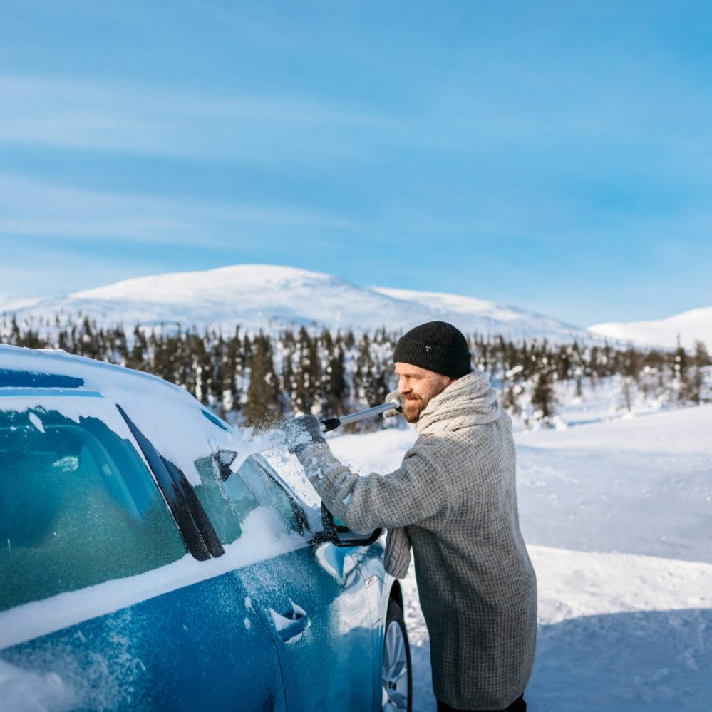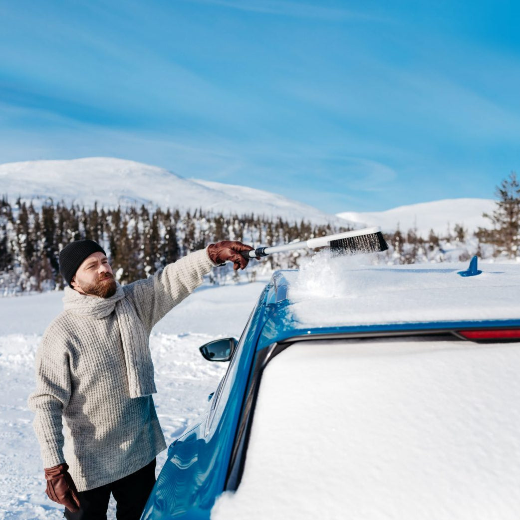 Kotimainen Kungs Tele-is on teleskooppinen lumiharja, jossa on tukeva säädettävä alumiinivarsi sekä vaihdettava raappaosa.