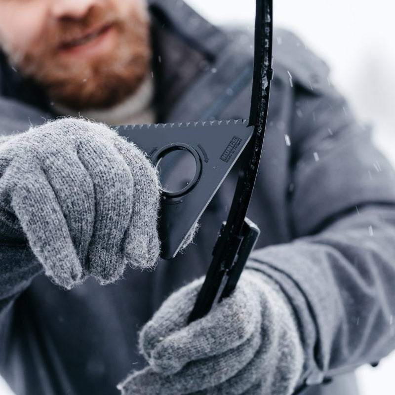 Kolmionmuotoisessa Kungs jääraapassa on yhteensä kuusi raaputuspintaa, kaksi joka reunalla. Jääraapassa on myös jäähampaat, joilla saa murskattua lujankin teräsjään sekä ura pyyhkijänsulkien puhdistamista varten. Lumiharjojen jääraappa kuluu käytössä ajan mittaan, mutta voit vähentää muovijätteen määrää vaihtamalla harjaasi vain uuden raapan kuluneen tilalle, jolloin sama harja palvelee pitkään.