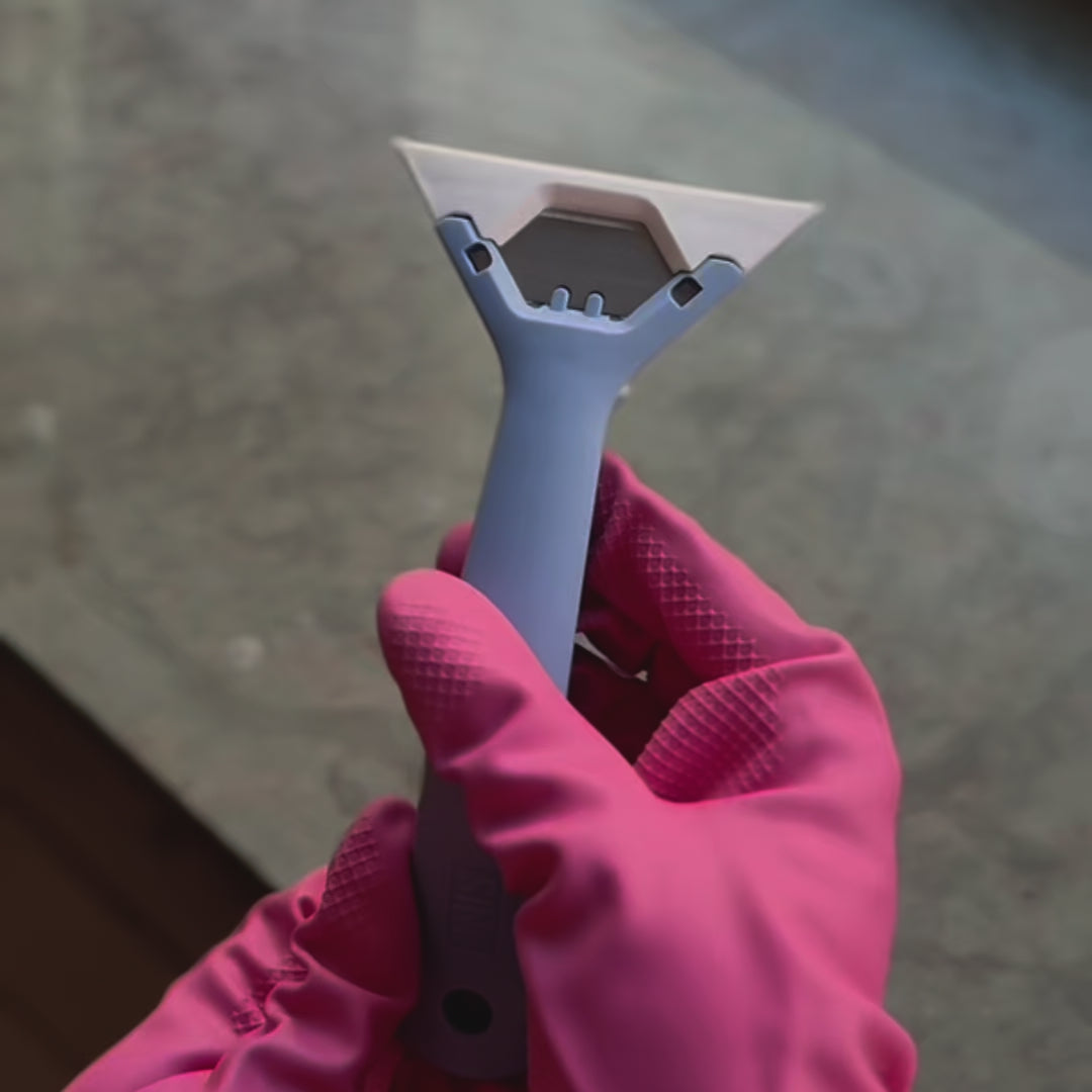 Puhdistusterällä poistat tehokkaasti maalitahrat ja tiukasti pinttyneen lian kaikilta lasipinnoilta, kuten keraamiselta tai induktioliedeltä ja ikkunoista. Jämäkästä kahvasta saa helposti oikean otteen niin, että puhdistettava pinta ei naarmuunnu.