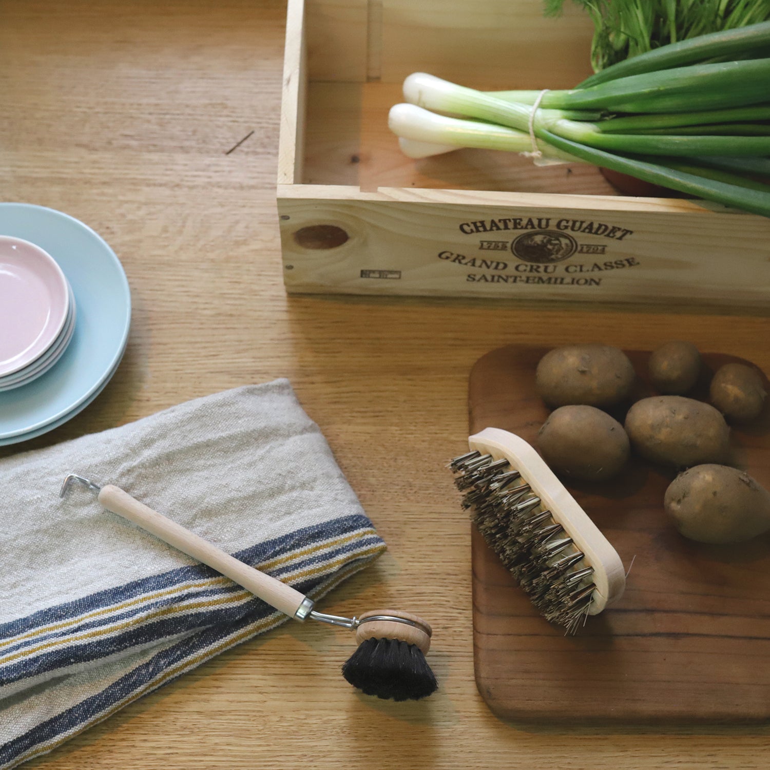 Hellävaraiset hevosenjouhesta valmistetut luonnonharjakset. Kaikkien astioiden pesuun, mutta erityisesti hellävaraiseen pesuun lasi-, kristalli- ja hopea-astioille sekä -aterimille. Puuvartiseen tiskiharjaan on saatavana vaihtopää.