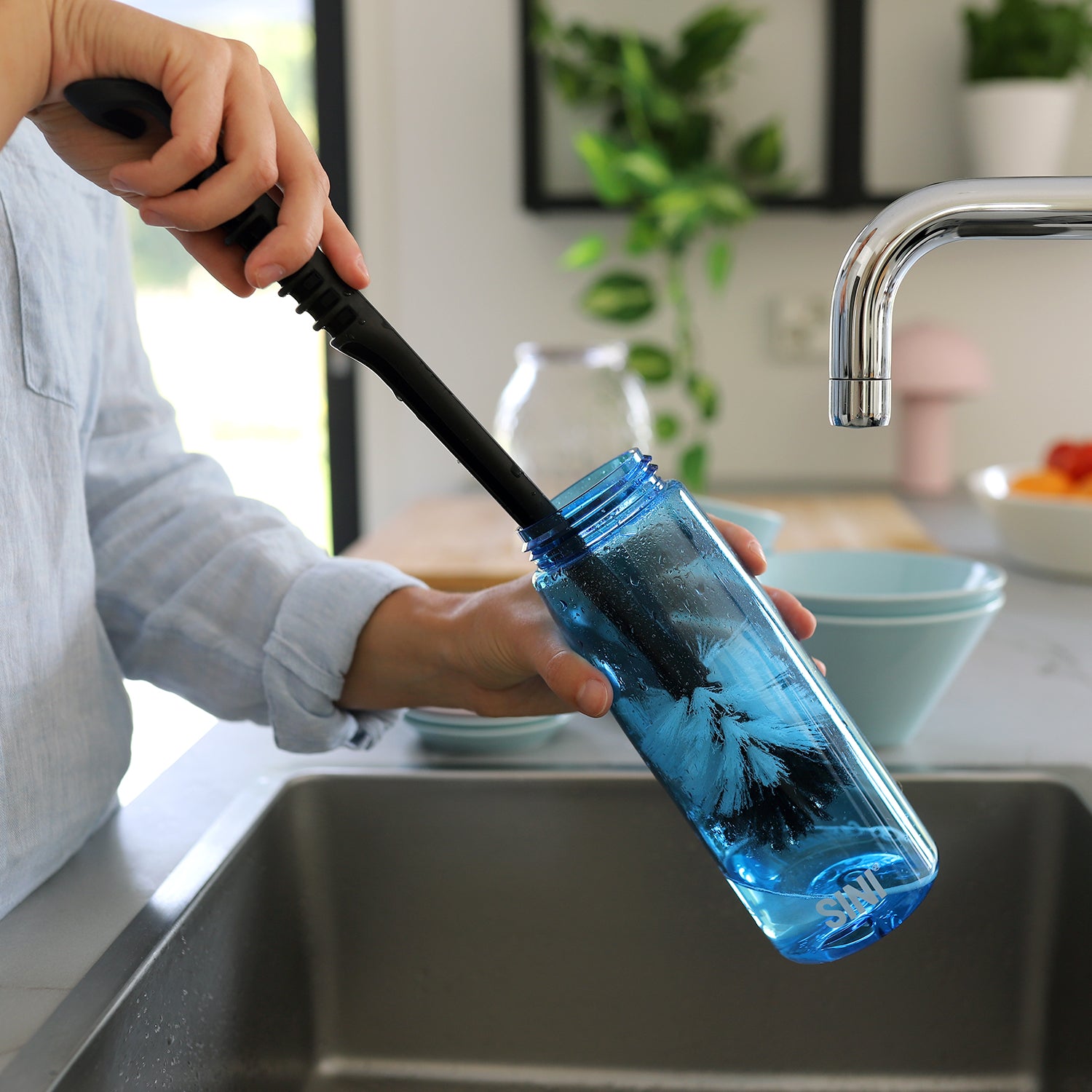 SINI Sporttipulloharja on suunniteltu urheilujuomapullojen, termospullojen ja maljakoiden pesemiseen.