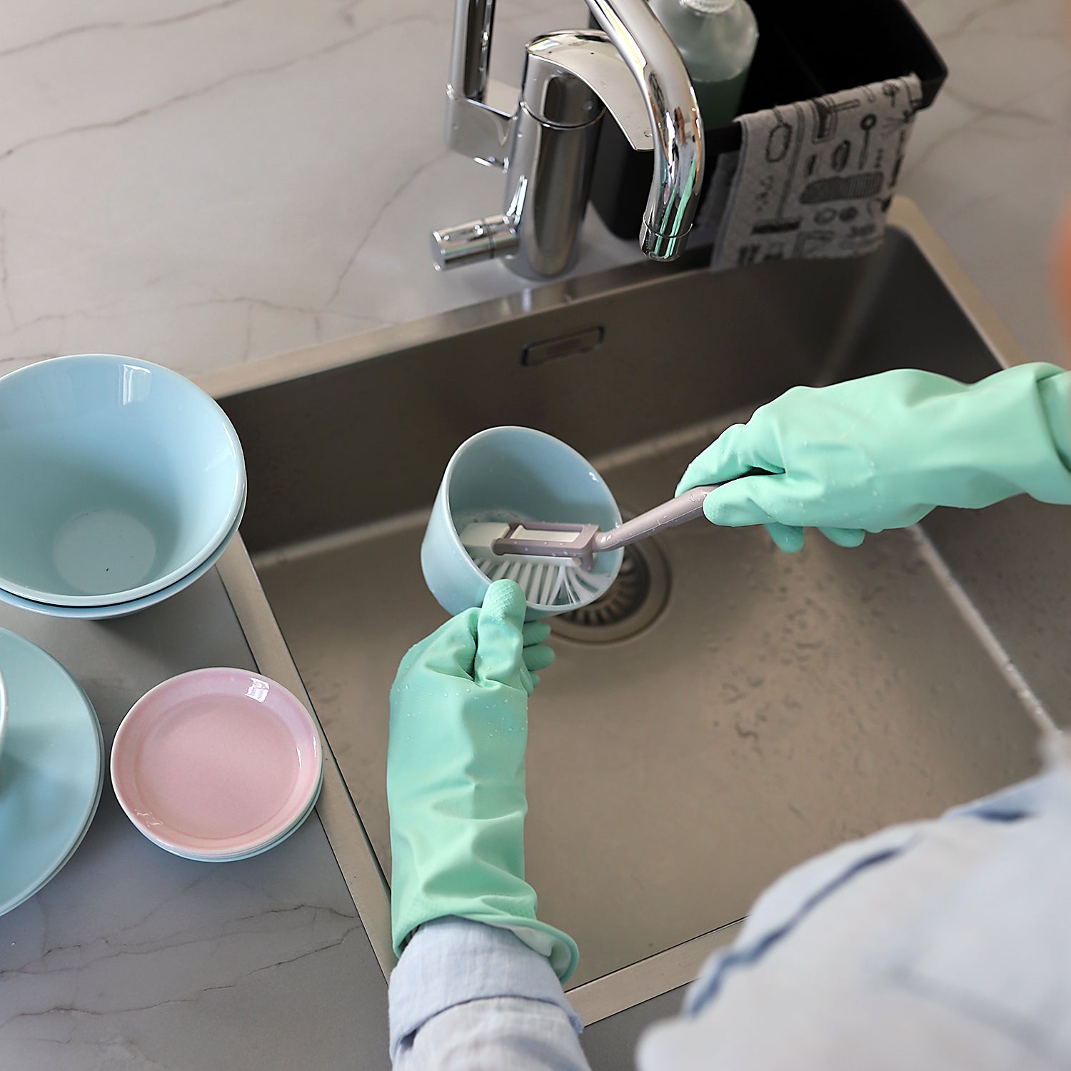 Talouskäsineet on valmistettu luonnonkumista ja niiden sisäpinnalla on nukattua puuvillaa. Käsineet ovat kestävät ja joustavat, mutta samalla ne ovat kuitenkin riittävän ohuet, jotta sormituntuma säilyy.