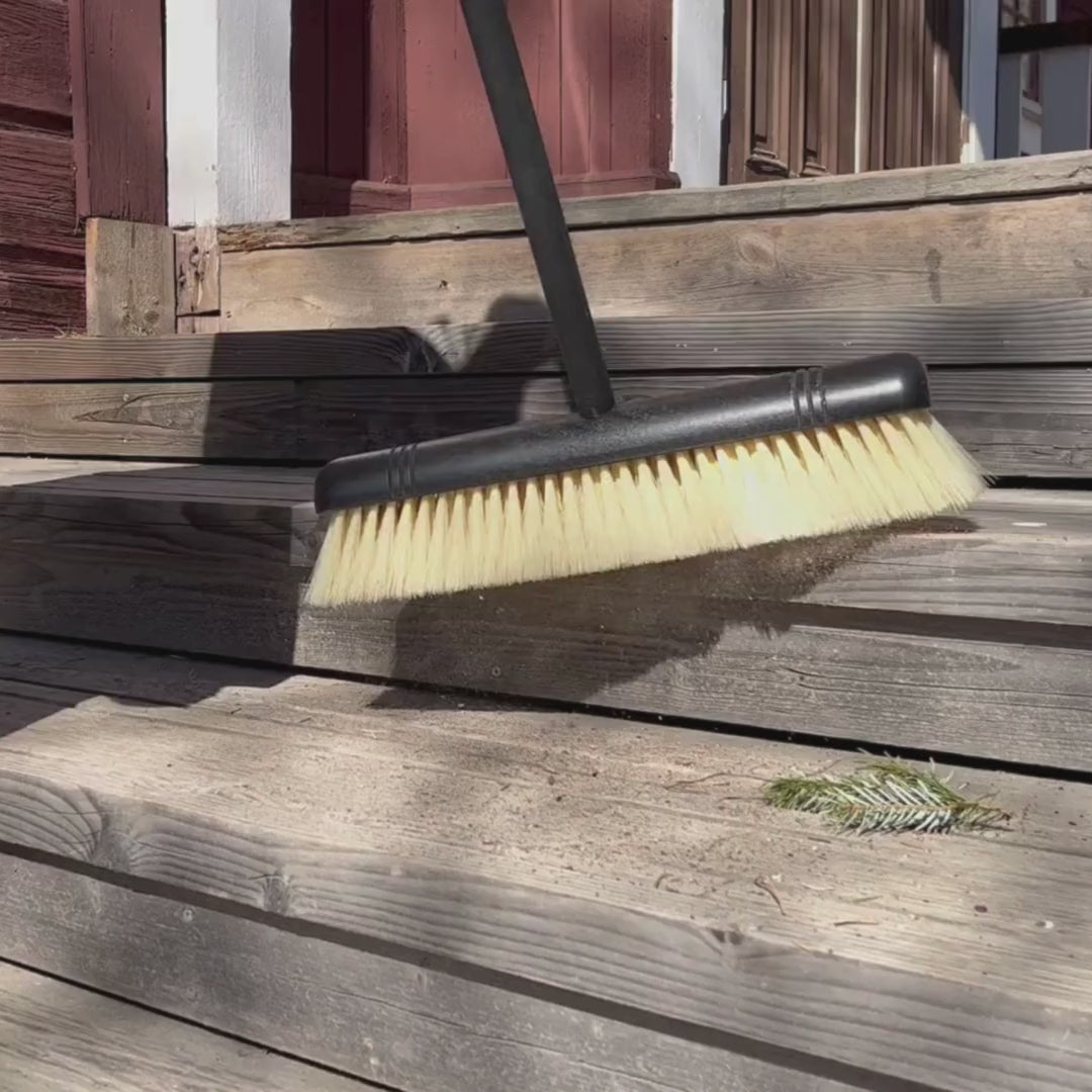 Tyylikäs musta puuharja laajojen terassialueiden puhdistamiseen sekä lakaisemiseen. Soveltuu niin suoralle, kuin uritetulle terassilaudalle. Näppärä harja myös esimerkiksi autotalliin tai varastoon. Leveämpi harja helpottaa ja nopeuttaa siivoamista.